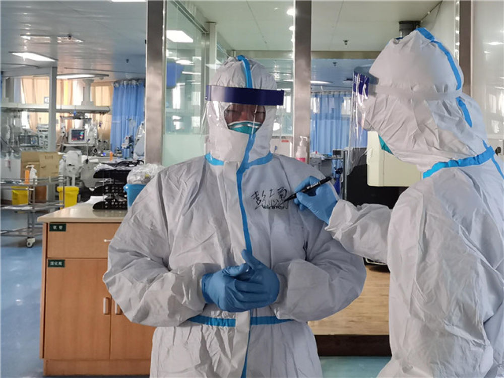 2月5日,武漢大學(xué)中南醫(yī)院重癥醫(yī)學(xué)科主任彭志勇(左)走進(jìn)隔離病房準(zhǔn)備救治患者,一名醫(yī)生在他的隔離服上寫下名字(手機(jī)拍攝)。新華社發(fā)(鐘南軒 攝) 戰(zhàn)紅區(qū),刻不容緩。醫(yī)護(hù)人員在這里,是勇士,是戰(zhàn)士!他們,以卓絕的勇氣,科學(xué)的實(shí)踐,與死神展開一場生死競速。 抗擊疫情,武漢,是全國、全世界的焦點(diǎn)。紅區(qū),是焦點(diǎn)中的焦點(diǎn)。那里,都發(fā)生過哪些驚魂動(dòng)魄又直指人心的故事? “辦法總比困難多”