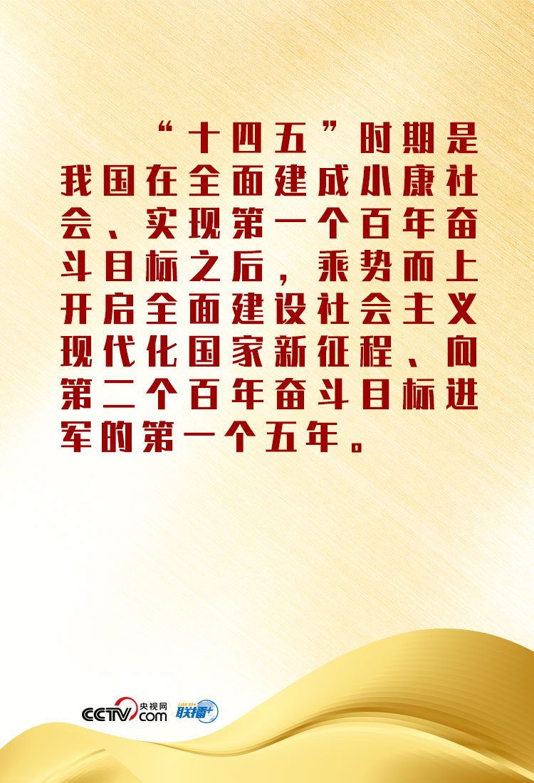 按照黨的十九大對實(shí)現(xiàn)第二個(gè)百年奮斗目標(biāo)作出的分兩個(gè)階段推進(jìn)的戰(zhàn)略安排,綜合考慮未來一個(gè)時(shí)期國內(nèi)外發(fā)展趨勢和我國發(fā)展條件,緊緊抓住我國社會(huì)主要矛盾,深入貫徹新發(fā)展理念,對“十四五”時(shí)期我國發(fā)展作出系統(tǒng)謀劃和戰(zhàn)略部署。
