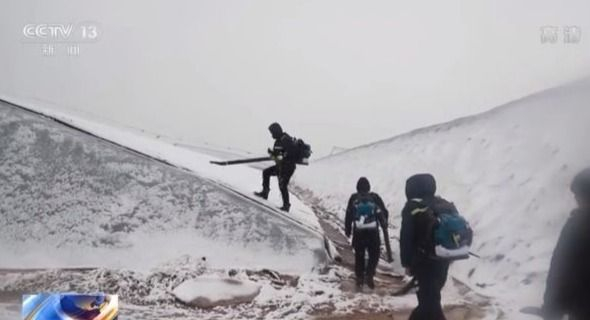 在河南商丘夏邑縣北嶺鎮(zhèn)高效農(nóng)業(yè)產(chǎn)業(yè)園內(nèi),20余戶種植戶在農(nóng)技師的指導(dǎo)下,利用除雪機(jī),對大棚上面的積雪進(jìn)行清除。這些除雪機(jī),功率大、風(fēng)力足,四五個人配合作業(yè),20分鐘就可以將一座占地10余畝的大棚積雪處理干凈。