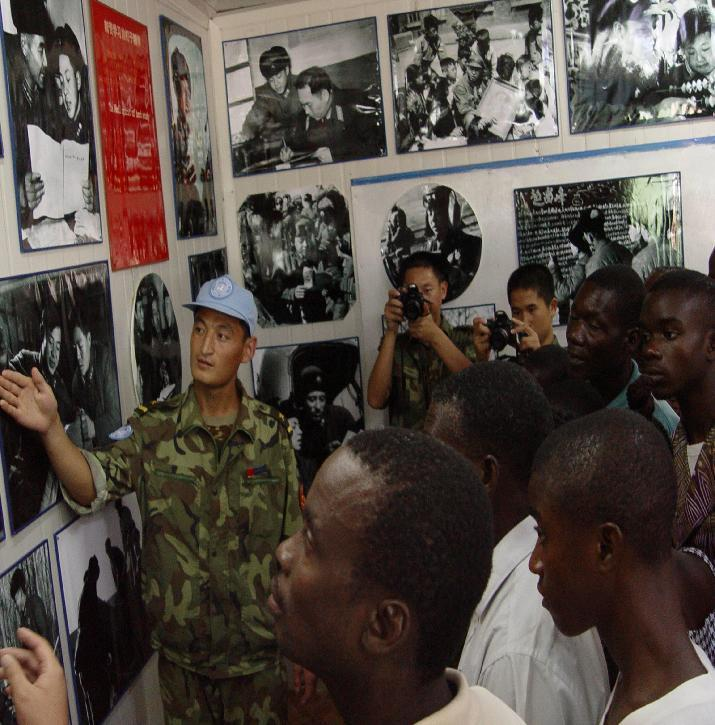 “雷鋒班”所在連隊部分官兵赴利比里亞維和時,在駐地建起雷鋒事跡展室