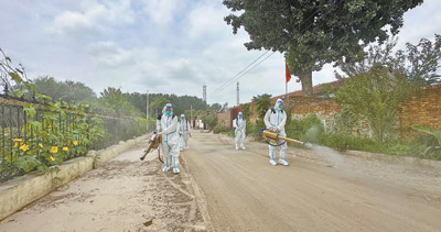 8月6日,河北省永清縣曹家務(wù)鄉(xiāng)張莊子村,工作人員在對洪水過后的街道進(jìn)行消毒。 邵玉姿 龐趁友攝影報道 汛情就是命令,生命重于泰山,防汛救災(zāi)工作絕不能有絲毫放松。加強力量組織救援,妥善安置受災(zāi)群眾,抓緊修復(fù)受損基礎(chǔ)設(shè)施,落實各項防汛救災(zāi)措施……連日來,各地區(qū)和有關(guān)部門擰成一股繩,以“時時放心不下”的責(zé)任感、“越是艱險越向前”的精氣神,全面加強災(zāi)害防范應(yīng)對,全力以赴開展搶險救災(zāi)工作,全力保障人民群眾生命財產(chǎn)安全和社會大局穩(wěn)定。廣大黨員干部和群眾團(tuán)結(jié)一心、迎難而上,搶抓時間窗口,采取多種措施,盡快恢復(fù)正常生產(chǎn)生活秩序,堅決打贏防汛抗洪救災(zāi)遭遇戰(zhàn)。 |