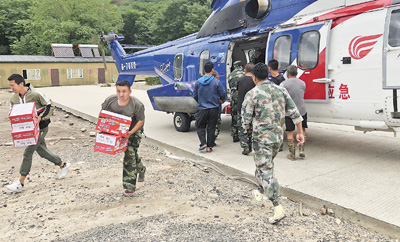 8月6日,黑龍江省應(yīng)急管理廳調(diào)派直升機(jī)向受災(zāi)地區(qū)運送救援物資。 劉溫馨 段紅偉攝影報道