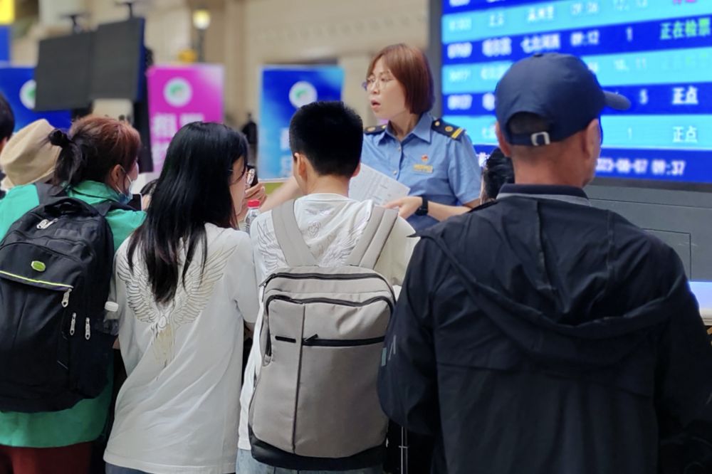 8月7日,乘客在車站咨詢列車開行等信息。(中國鐵路哈爾濱局集團有限公司供圖) |