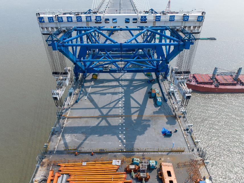 在江蘇,長(zhǎng)達(dá)1208米的世界最大跨度斜拉橋——常泰長(zhǎng)江大橋全橋貫通。建設(shè)單位在大橋建設(shè)過程中投用了QMD-2000型全球最大噸位橋面吊機(jī),研發(fā)了抗拉強(qiáng)度高達(dá)2100兆帕的斜拉索,打造出國(guó)內(nèi)首條鋼桁梁全過程智能生產(chǎn)線……依托5G、大數(shù)據(jù)、物聯(lián)網(wǎng)等信息技術(shù),常泰長(zhǎng)江大橋建設(shè)還實(shí)現(xiàn)了對(duì)施工全過程的“可知、可測(cè)、可控”。