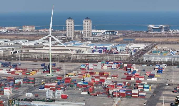 訪客進(jìn)入中國(guó)北方最大港口城市天津的濱海新區(qū),會(huì)為高速路上源源不斷的重型卡車和港口堆積如山的集裝箱感到吃驚。