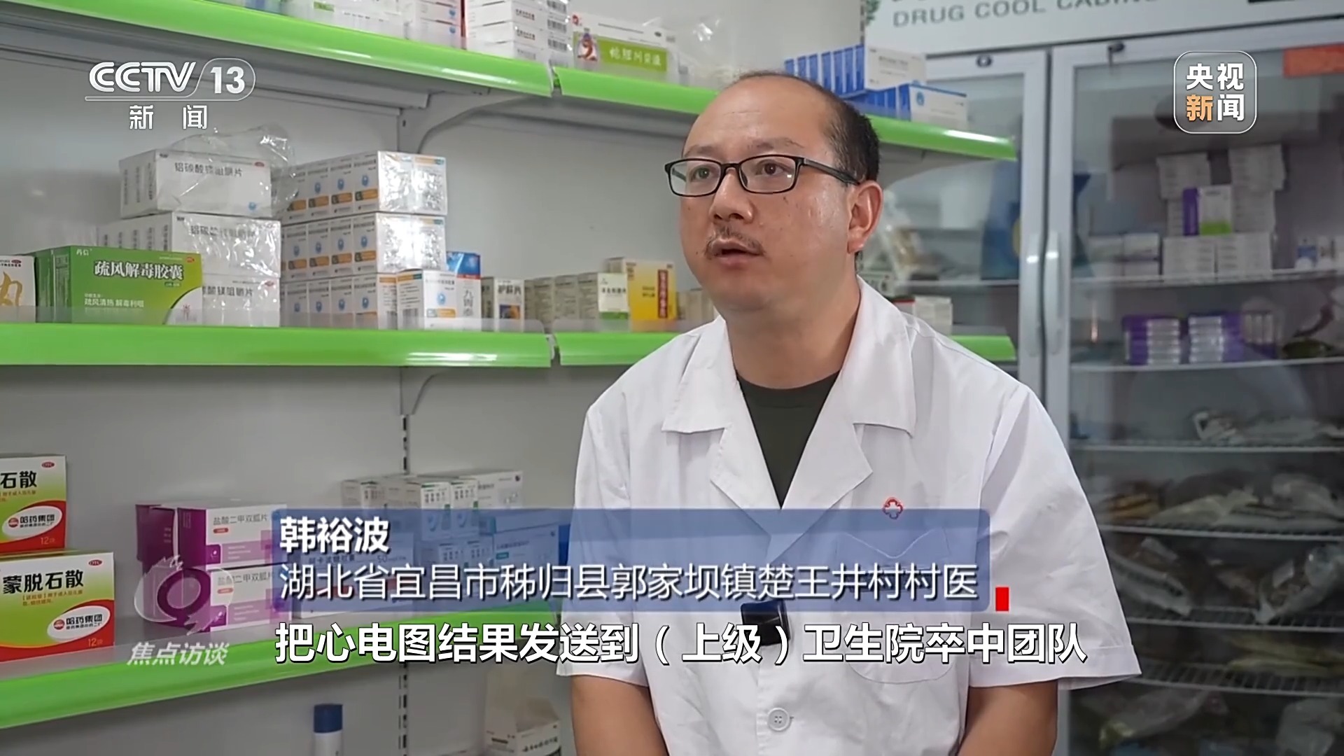 湖北省宜昌市秭歸縣郭家壩鎮(zhèn)楚王井村村醫(yī) 韓裕波:我?guī)闲l(wèi)健局配送的心電圖機趕到譚大伯家,第一時間給他做了心電圖,把結(jié)果發(fā)送到上級衛(wèi)生院卒中團隊,分析是心肌梗塞,在指導下,我給他采用了突擊療法,上急救性‘一包藥’,呼叫120,等待他們來救援。 秭歸縣境內(nèi)山巒起伏,長江由西向東將縣城分為南北兩部分,12個鄉(xiāng)鎮(zhèn)散落其間。譚大伯所在的楚王井村,距最近的郭家壩鎮(zhèn)中心衛(wèi)生院有近30公里的山路,往返需要近3個小時。但如果乘快艇走長江水路,只需要30分鐘。危急時刻,120聯(lián)系歸州海事處派來的快艇,僅用了10分鐘就趕到現(xiàn)場,通過水路將病人及時送到了鄉(xiāng)鎮(zhèn)醫(yī)院。