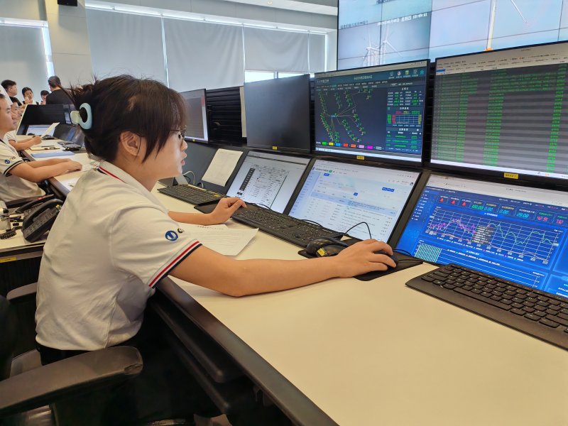 8月8日,記者跟隨“高質(zhì)量發(fā)展調(diào)研行”主題采訪活動來到我國首個全產(chǎn)業(yè)鏈的海上風(fēng)電產(chǎn)業(yè)園——福建三峽海上風(fēng)電國際產(chǎn)業(yè)園采訪,在三峽福建集控中心見到了正在值班的“00”后女孩楊春林,只見她雙眼一直緊盯著眼前的幾臺電腦屏幕,不時查看屏幕上各海上風(fēng)電場的實時情況。這時剛好有一臺風(fēng)機顯示出現(xiàn)故障,她趕緊查看情況并做了相應(yīng)安排。