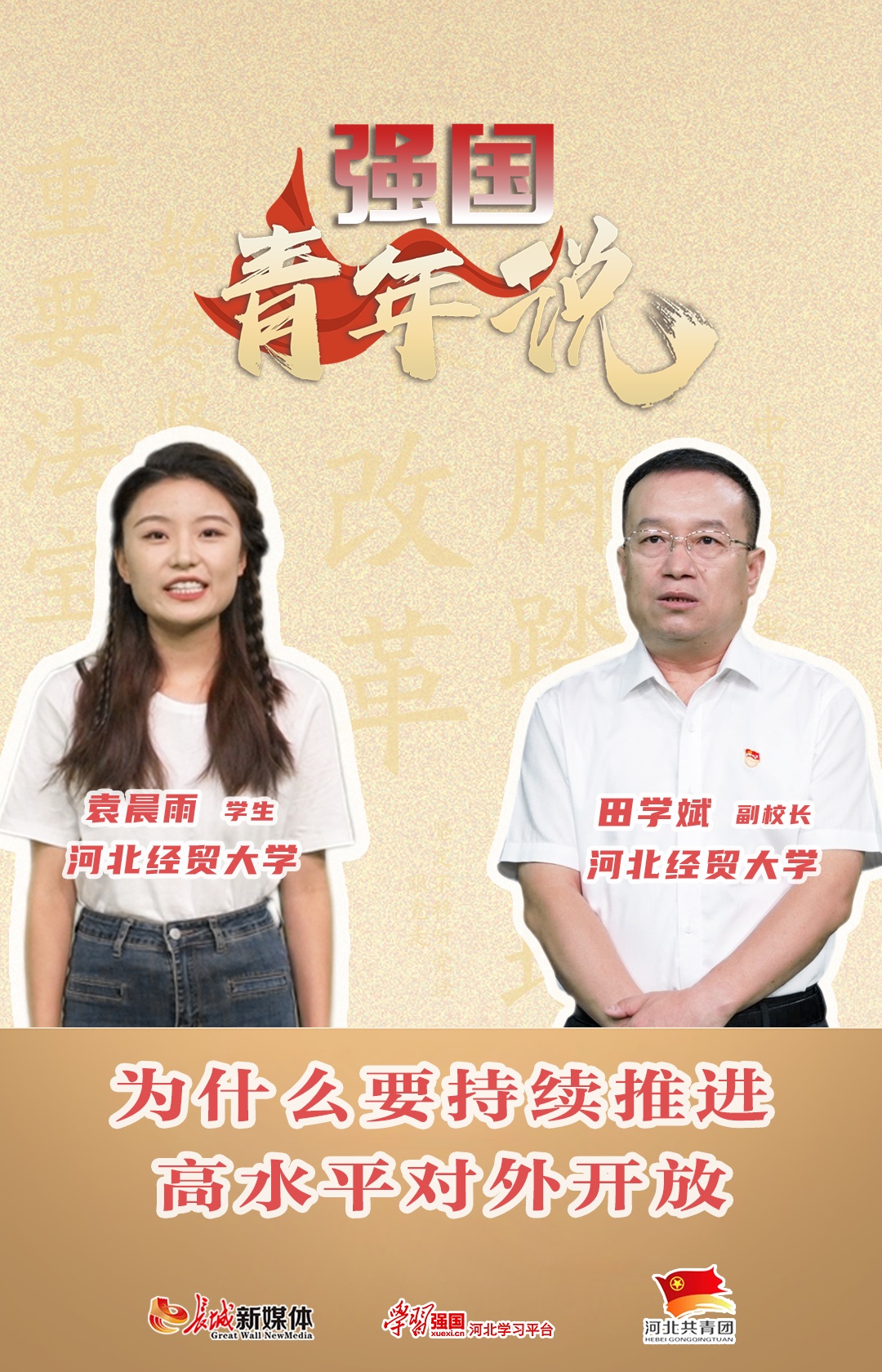 開放是中國式現(xiàn)代化的鮮明標識。黨的二十屆三中全會就完善高水平對外開放體制機制作出系統(tǒng)部署,明確提出以開放促改革,建設更高水平開放型經(jīng)濟新體制。 未來我們的國家將如何同世界打交道?更高水平的開放型經(jīng)濟新體制,又會給青年帶來哪些機遇呢? 《強國青年說》第三期,一起聆聽河北經(jīng)貿大學副校長田學斌教授的精彩解讀。 總策劃:王悅路 侯貴松 策 劃:邵 荃 李 遙 吳湘鋒 監(jiān) 制:翟 新 李 崢 馬 勇 統(tǒng) 籌:梁成棟 尹斯祺 編 導:曹 茜 文 案:梁成棟 攝 像:劉佩堯 后 期:曹 茜 海 報:劉佩堯 出 品:長城新媒體集團 “學習強國”河北學習平臺 共青團河北省委 |