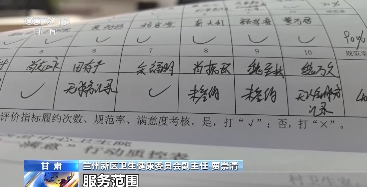 蘭州新區(qū)西岔中心衛(wèi)生院院長 蘇光偉:之前好多的工作停留在紙質(zhì)的表面簽約。只是簽約了,有時候一年連一次的服務(wù)記錄都沒有,考核機制也不完善,家庭醫(yī)生的工作積極性也不高,老百姓對這個工作的認(rèn)可度也不好。 2023年7月,蘭州新區(qū)對家庭醫(yī)生團隊的考核體系進行了改革,考核指標(biāo)由原來的只考核簽約率,增加了考核服務(wù)頻次、服務(wù)質(zhì)量等多個維度。