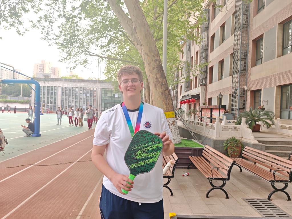 4月15日,在深圳南山外國語學(xué)校高新中學(xué),中美兩國學(xué)生結(jié)對(duì)進(jìn)行匹克球雙打比賽。新華社記者梁旭攝 ——競技,兩國伙伴擊球中“對(duì)話”,以運(yùn)動(dòng)建立聯(lián)結(jié)。 17日下午,北京中學(xué)西壩河校區(qū)運(yùn)動(dòng)場(chǎng),明黃匹克球輕盈飛舞在空中,匹克球雙打友誼賽在這里舉行。 馬里蘭州丘吉爾高中學(xué)生謝拉茲·巴希爾正和中國隊(duì)友進(jìn)行賽前熱身:先顛球,盡量用球拍中心接球,適應(yīng)節(jié)奏;再進(jìn)行落地式發(fā)球練習(xí),保持發(fā)力平穩(wěn)。 “新手持拍最好像握拳一樣,五指握住整個(gè)手柄。如果食指在拍后支撐,有可能會(huì)受傷。”這一局他們的對(duì)手瑞恩撿球路過,給出熱心建議。 比賽正式開始時(shí),突然刮來的一陣風(fēng)改變了球的走向,謝拉茲安慰錯(cuò)失擊球的隊(duì)友,“沒關(guān)系,下次風(fēng)可能順著我們這邊,我們?cè)倮蔑L(fēng)向,調(diào)整戰(zhàn)略?!?/p>