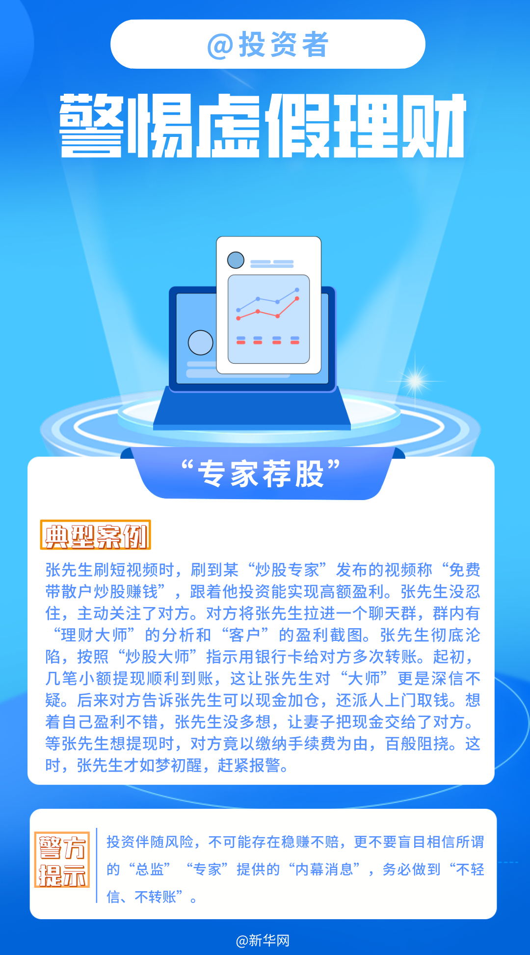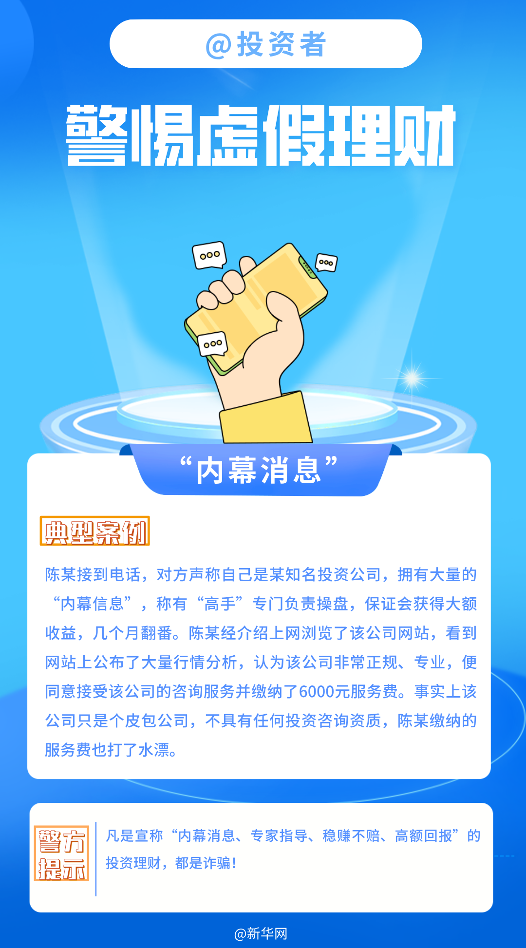 虛假網(wǎng)絡(luò)投資理財詐騙系2025十大高發(fā)電信網(wǎng)絡(luò)詐騙類型之一?!懊麕熤笇?dǎo)”“內(nèi)幕消息”“穩(wěn)賺不賠”......這些都是詐騙分子的套路,廣大投資者們務(wù)必要提高警惕、仔細(xì)甄別。