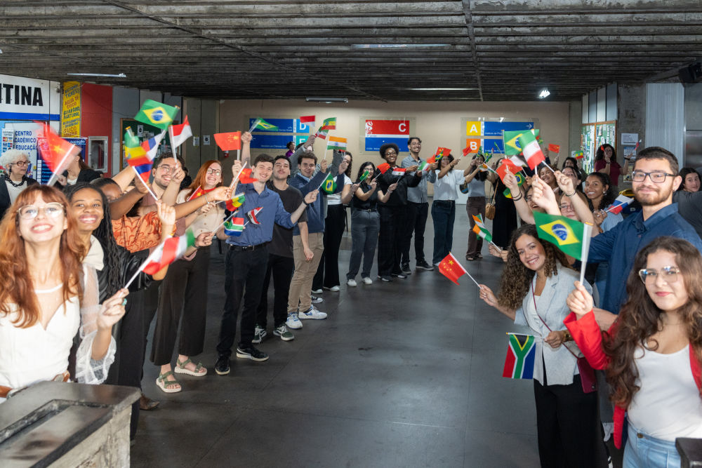 6月27日,巴西里約熱內(nèi)盧州立大學(xué)的學(xué)生歡迎文明對話系列活動(dòng)參會(huì)嘉賓到來。新華社記者王天聰攝