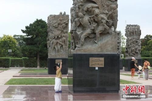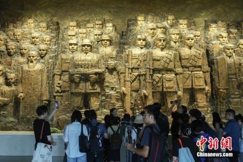 8?14?,?朋友參觀中國(guó)??抗?戰(zhàn)爭(zhēng)紀(jì)念雕塑園。 中新社記者 楊郁然 攝