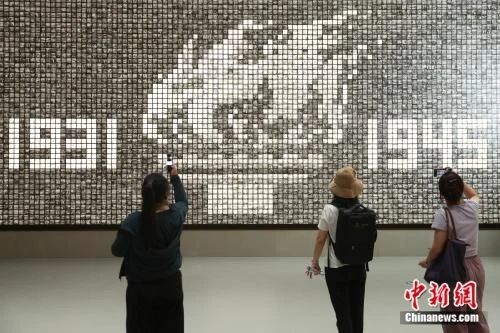 7?7?,《為了?族解放與世界和平》主題展覽在位于北京的中國(guó)??抗?戰(zhàn)爭(zhēng)紀(jì)念館開幕。圖為由5098張抗戰(zhàn)?照?組成的照?墻。 中新社記者 蔣啟明 攝