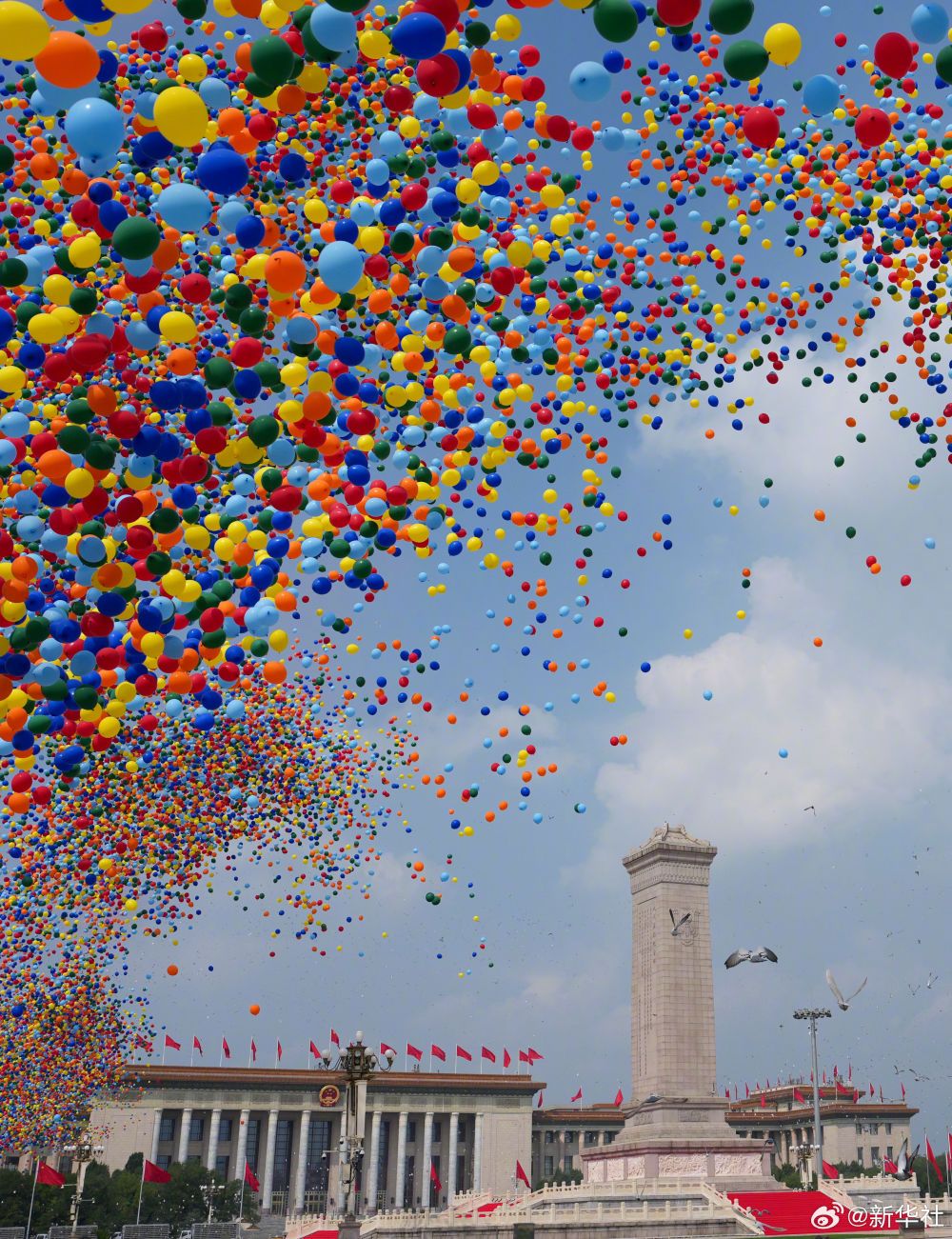 和平鴿展翅高飛,彩色氣球騰空而起!回望崢嶸的血火歲月,讓我們以山河為證、以日月為銘,共同見(jiàn)證,英雄的中國(guó)人民永遠(yuǎn)不屈,和平的陽(yáng)光永遠(yuǎn)燦爛!讓我們?yōu)閯倮炔蕿樽鎳?guó)點(diǎn)贊!(記者:張宏祥、費(fèi)茂華、江文耀、周荻瀟、牟宇)