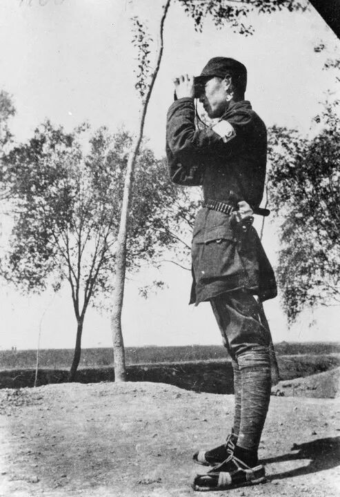 彭雪楓在陣地前察看敵情。新華社發(fā)