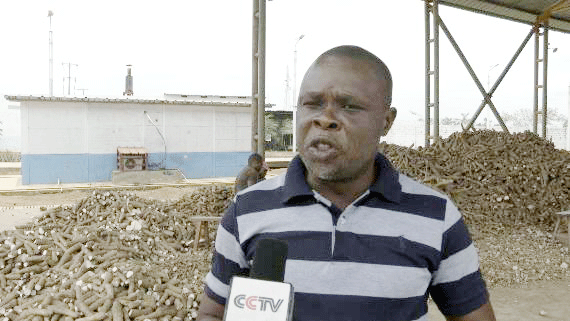 木薯粉加工廠廠長曹仁忠:我們使用中國先進(jìn)的種植技術(shù)和理念,在7000多公頃的土地上種植了不同品種的木薯,這樣確保每個時間段都有木薯成熟,從而滿足當(dāng)?shù)孛癖妼Z食的需求。