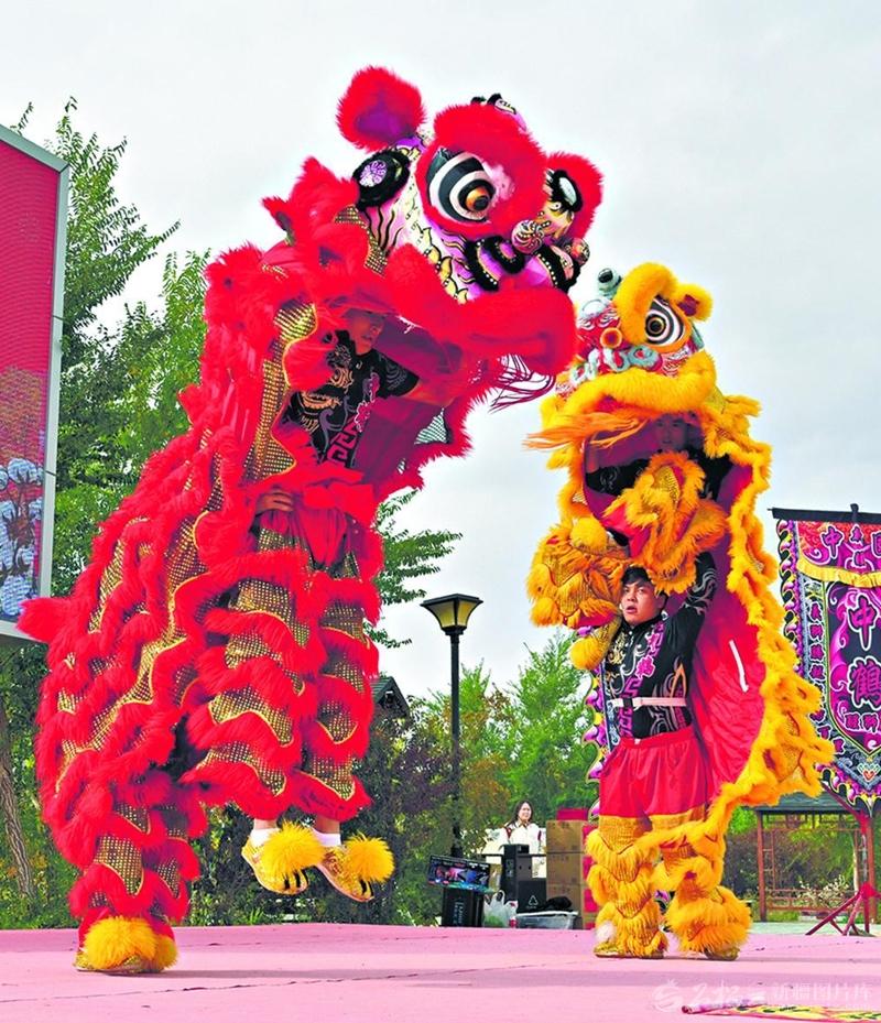 9月23日,為慶祝自治區(qū)成立70周年、歡慶"中國農(nóng)民豐收節(jié)",和布克賽爾蒙古自治縣查和特鄉(xiāng)舉行了一系列活動(dòng)。圖為群眾進(jìn)行舞獅表演?!鹾纬袕?qiáng)攝