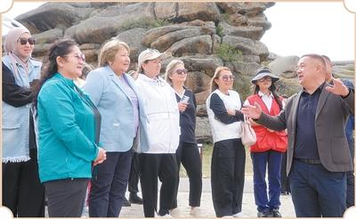 8月,哈薩克斯坦的婦女代表團來到阿勒泰地區(qū),參訪吉木乃縣草原石城景區(qū)。 巴麗江·毛里別克攝