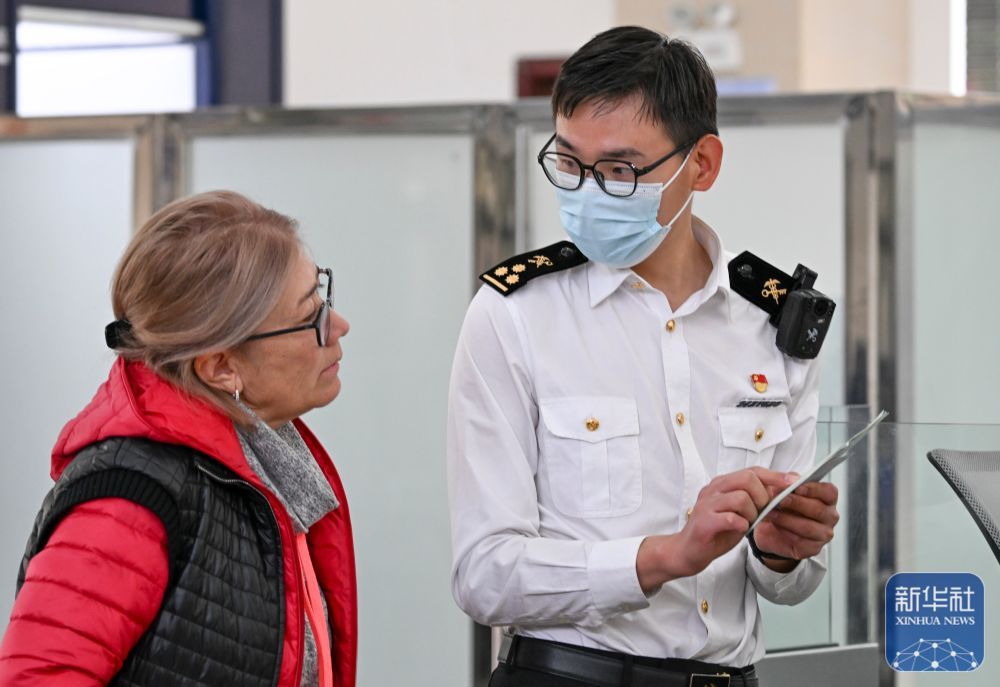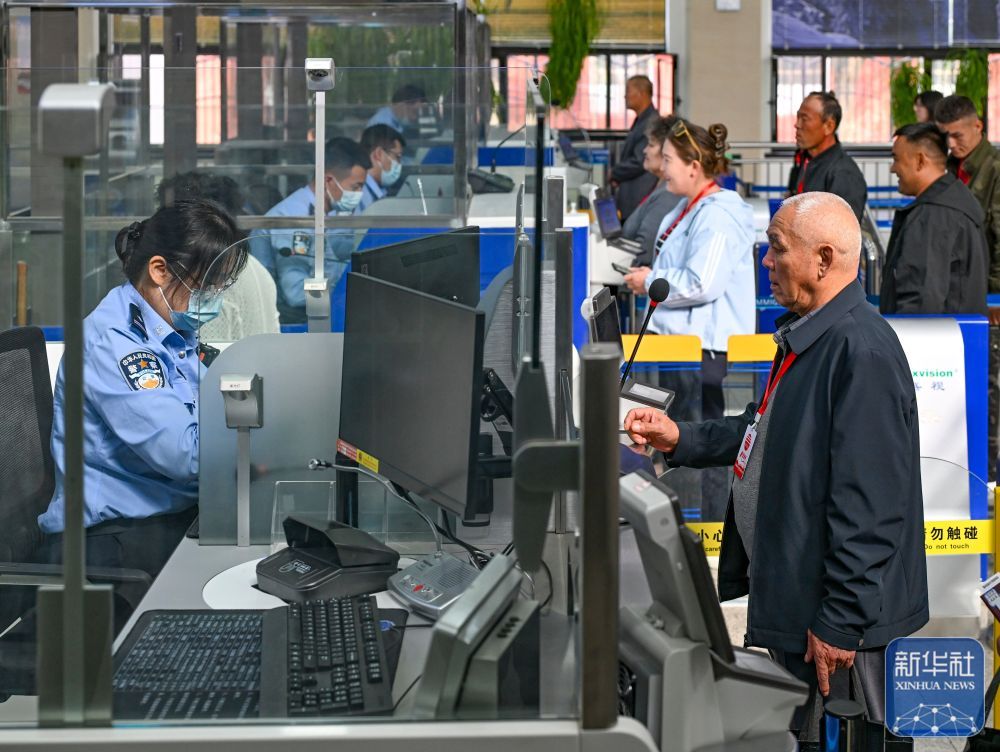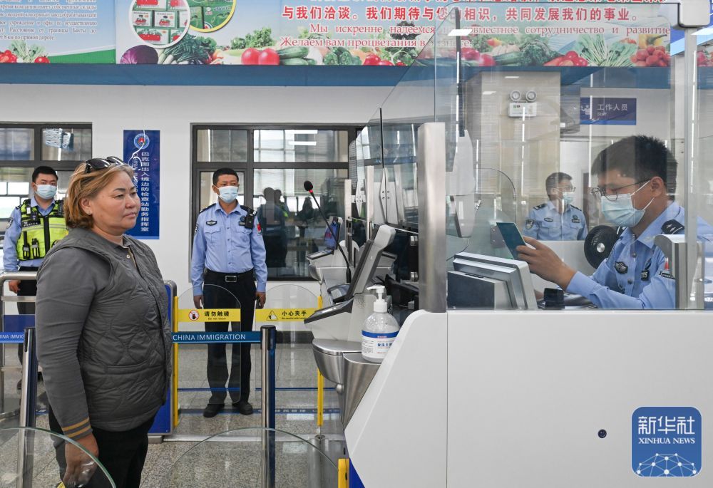 ↑9月17日,巴克圖出入境邊防檢查站的移民管理警察在為來自哈薩克斯坦的旅客辦理入境手續(xù)。新華社記者 王菲 攝