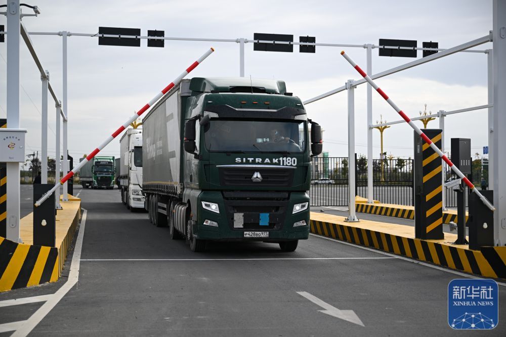 ↑9月17日,來自俄羅斯的貨車從位于新疆塔城地區(qū)的巴克圖口岸海關(guān)集中查驗場地出關(guān)。新華社記者 王菲 攝