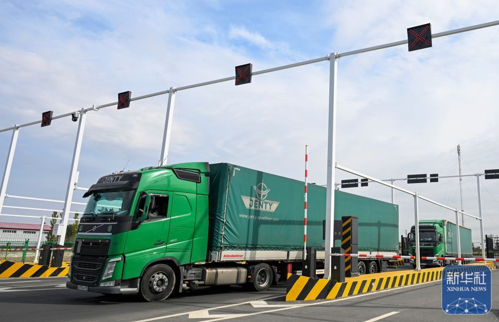 ↑9月17日,來自俄羅斯的貨車從位于新疆塔城地區(qū)的巴克圖口岸海關(guān)集中查驗場地出關(guān)。新華社記者 辛悅衛(wèi) 攝