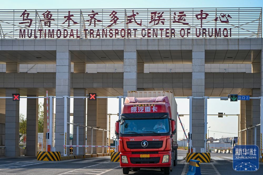 ↑9月15日,一輛貨車駛?cè)胛挥谛陆疄豸斈君R國際陸港區(qū)的烏魯木齊多式聯(lián)運中心。新華社記者 辛悅衛(wèi) 攝