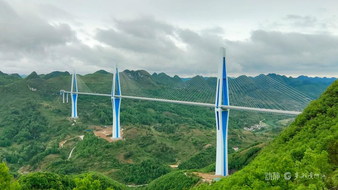 位于黔南州平塘縣槽渡河大峽谷之上,是國(guó)內(nèi)山區(qū)跨徑最大的三塔斜拉橋,橋體采用了造型優(yōu)美的空間鉆石形索塔,有“天空之橋”的美譽(yù)。大橋索塔為鋼筋混凝土空心薄壁結(jié)構(gòu),中塔總高332米,相當(dāng)于約110層的高樓,是世界第一高鋼筋混凝土橋塔。大橋建設(shè)者采用的鋼梁整節(jié)段縱移轉(zhuǎn)體懸拼工藝,為國(guó)內(nèi)首創(chuàng)。大橋的建成,為當(dāng)?shù)芈糜?、物流等產(chǎn)業(yè)發(fā)展注入強(qiáng)勁動(dòng)力。