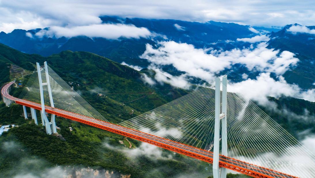 位于安順市關(guān)嶺布依族苗族自治縣與黔西南布依族苗族自治州貞豐縣交界處,是貴州六安高速公路的控制性工程。大橋全長(zhǎng)2890米,主橋跨徑1420米成就“山區(qū)第一跨”,625米的橋梁高度,刷新“世界第一高”。大橋建成通車(chē)后,兩岸通行時(shí)間將由過(guò)去的2小時(shí)縮短至2分鐘跨越?;ń瓖{谷大橋以首次在主纜內(nèi)部植入傳感系統(tǒng)、首創(chuàng)采用"上下水平穩(wěn)定板+中央穩(wěn)定板"抗風(fēng)措施等多項(xiàng)創(chuàng)新技術(shù)刷新世界紀(jì)錄,同時(shí),以打造"超級(jí)工程+全域旅游"的橋旅融合新模式,拓展了橋梁功能邊界,為交通基礎(chǔ)設(shè)施賦能區(qū)域發(fā)展提供了"貴州樣板"。