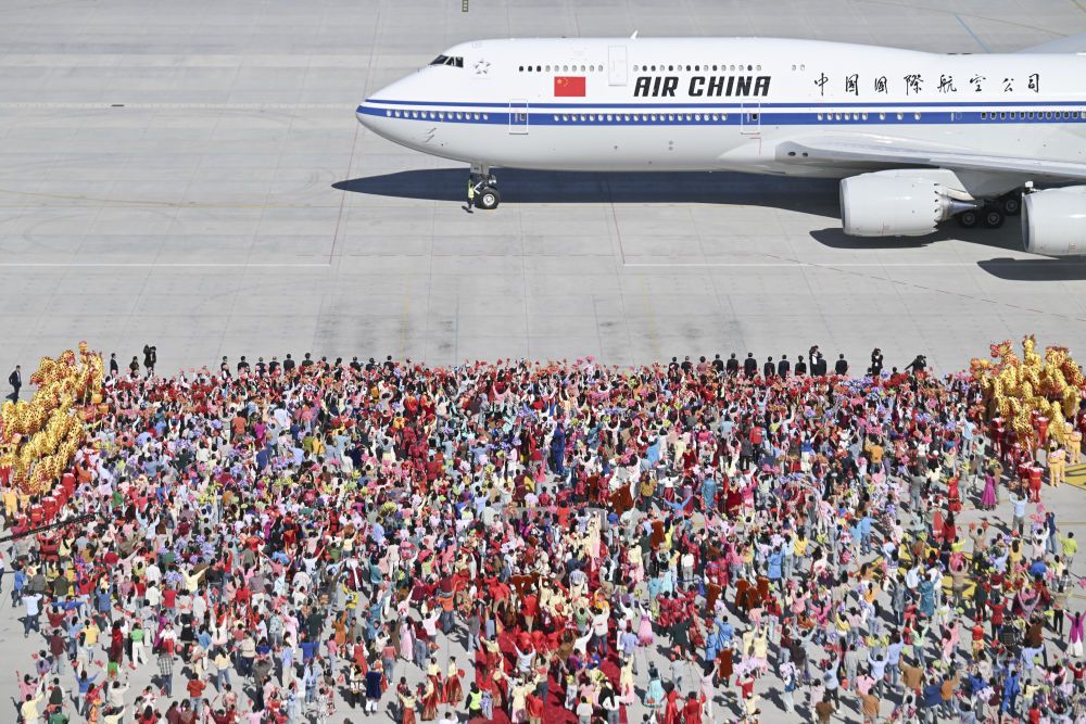 9月23日,中共中央總書記、國家主席、中央軍委主席習(xí)近平率中央代表團(tuán)抵達(dá)烏魯木齊,出席新疆維吾爾自治區(qū)成立70周年慶祝活動。