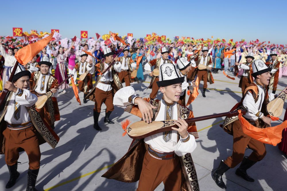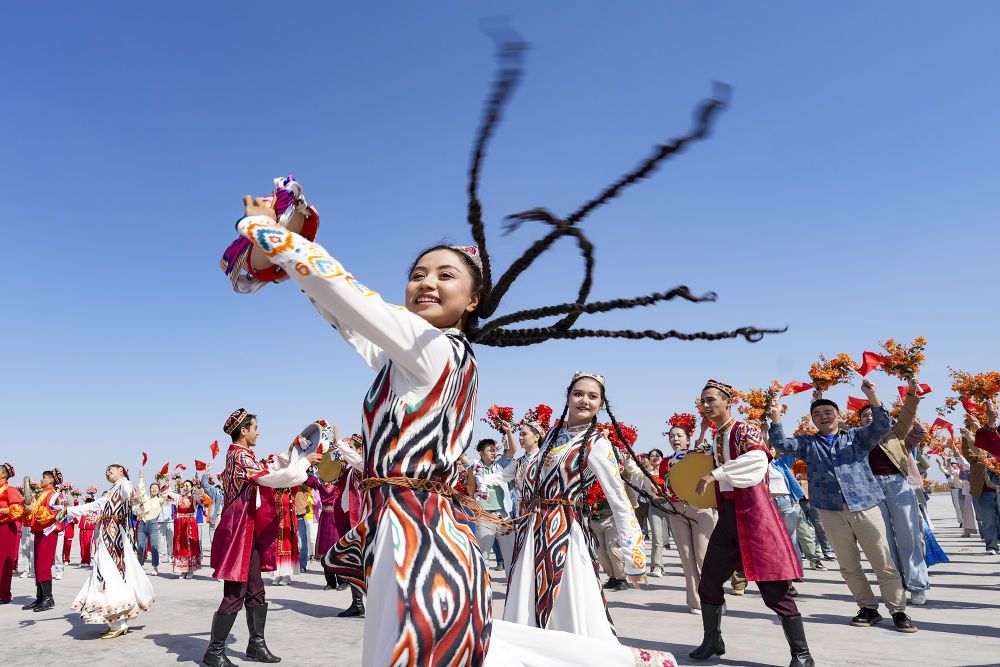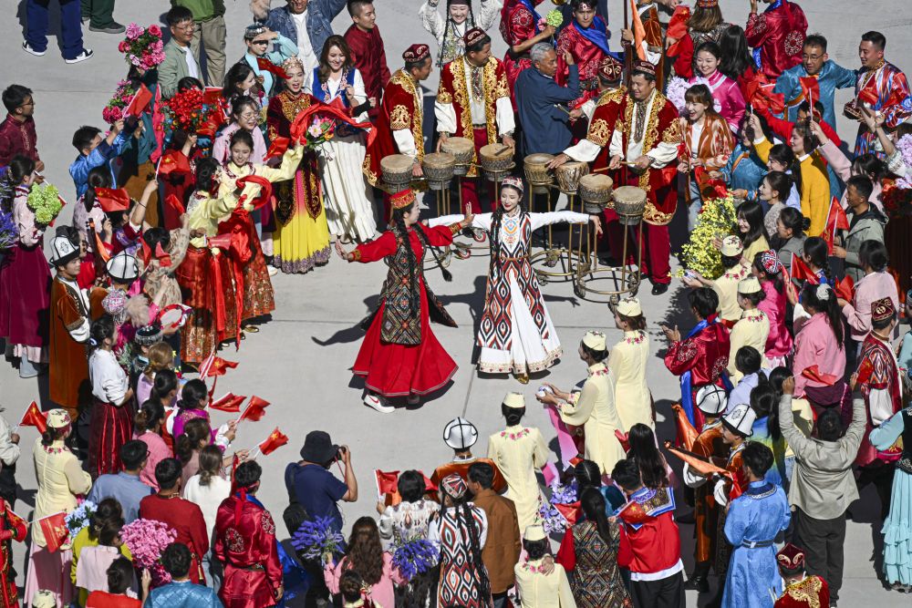 新華社記者的鏡頭里,各族兒女簇?fù)碓谝黄穑瑲g笑在一起;明艷的服飾、熱烈的歌舞,無不展現(xiàn)出團(tuán)結(jié)與奮進(jìn)的力量。