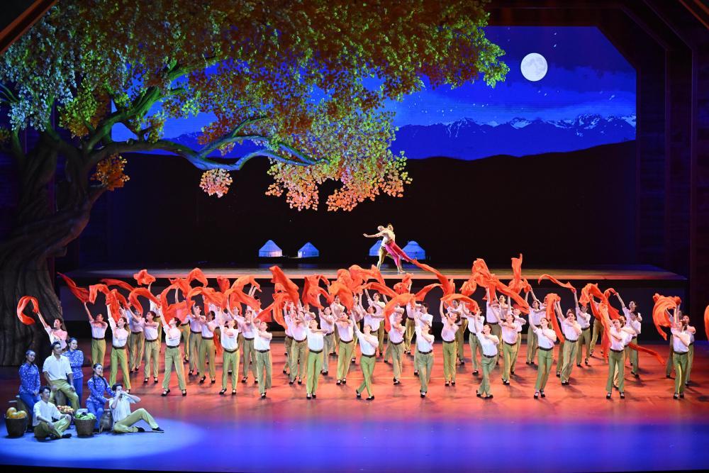 演出共3個篇章,展現(xiàn)新疆社會主義建設(shè)的火熱場景,表現(xiàn)改革開放給新疆帶來的蓬勃生機(jī),描繪新疆各族兒女同心筑夢新時代的美好圖景。