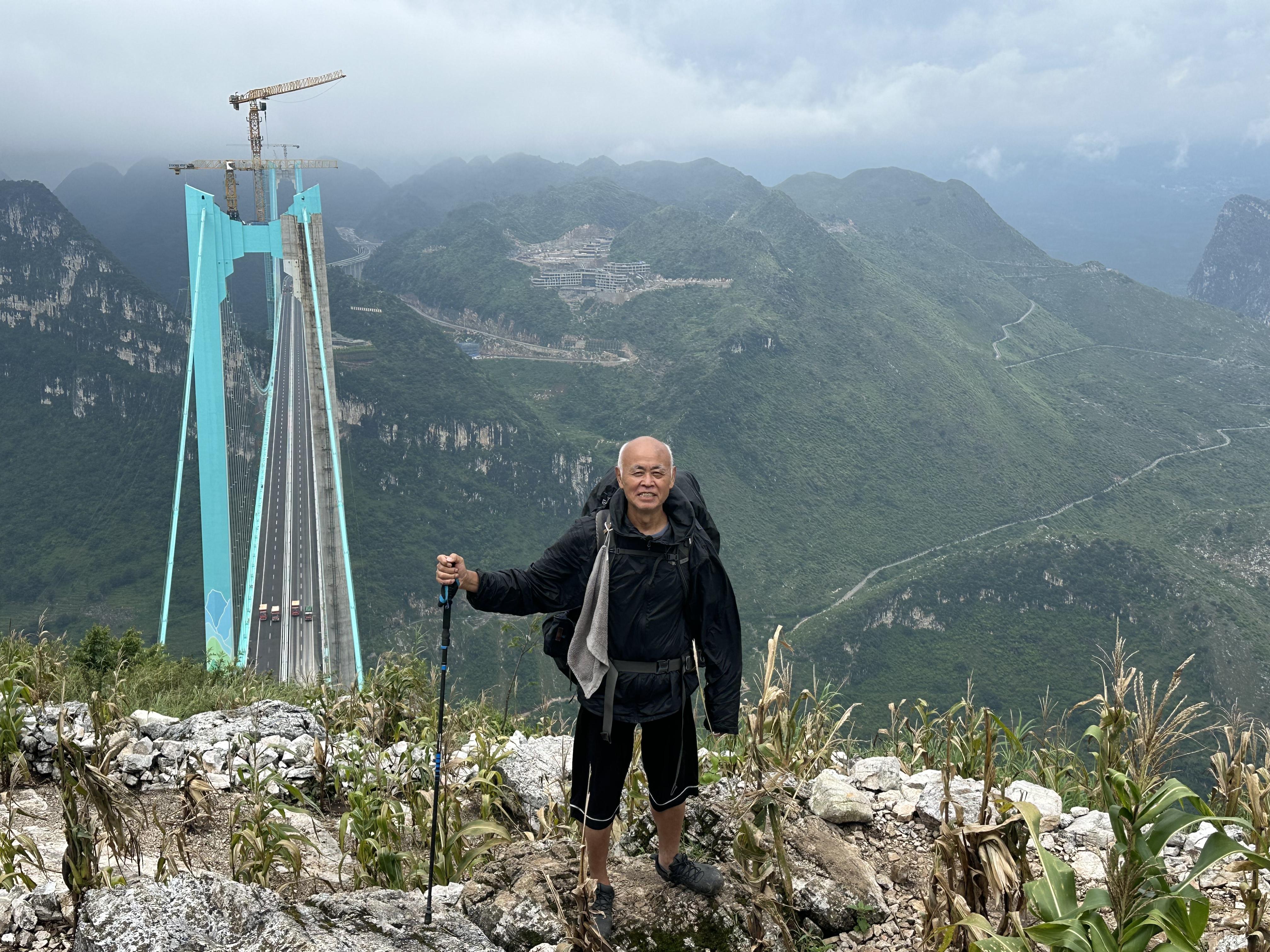 "為了看清花江峽谷大橋,我整整等了三天。"大橋關(guān)嶺岸的觀景平臺上,73歲的背包客王永厚在觀橋的人群中格外引人注目。