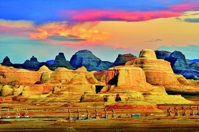 新疆克拉瑪依市烏爾禾區(qū)世界魔鬼城的"磕頭機(jī)"森林??死斠朗形麄鞑抗﹫D