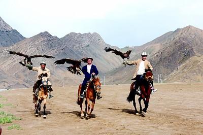新疆阿合奇縣蘇木塔什鄉(xiāng)馴鷹文化旅游景區(qū)的柯爾克孜族馴鷹表演。本報(bào)記者 劉宇航攝