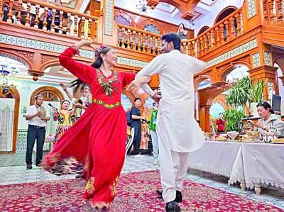 新疆喀什古城一家民宿內(nèi)的歌舞演出。本報(bào)記者 范天培攝