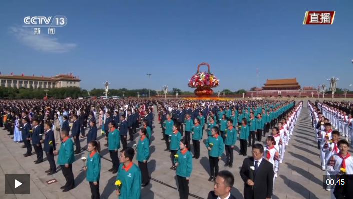 獨家視頻丨向人民英雄敬獻(xiàn)花籃儀式正式開始 全場高唱國歌