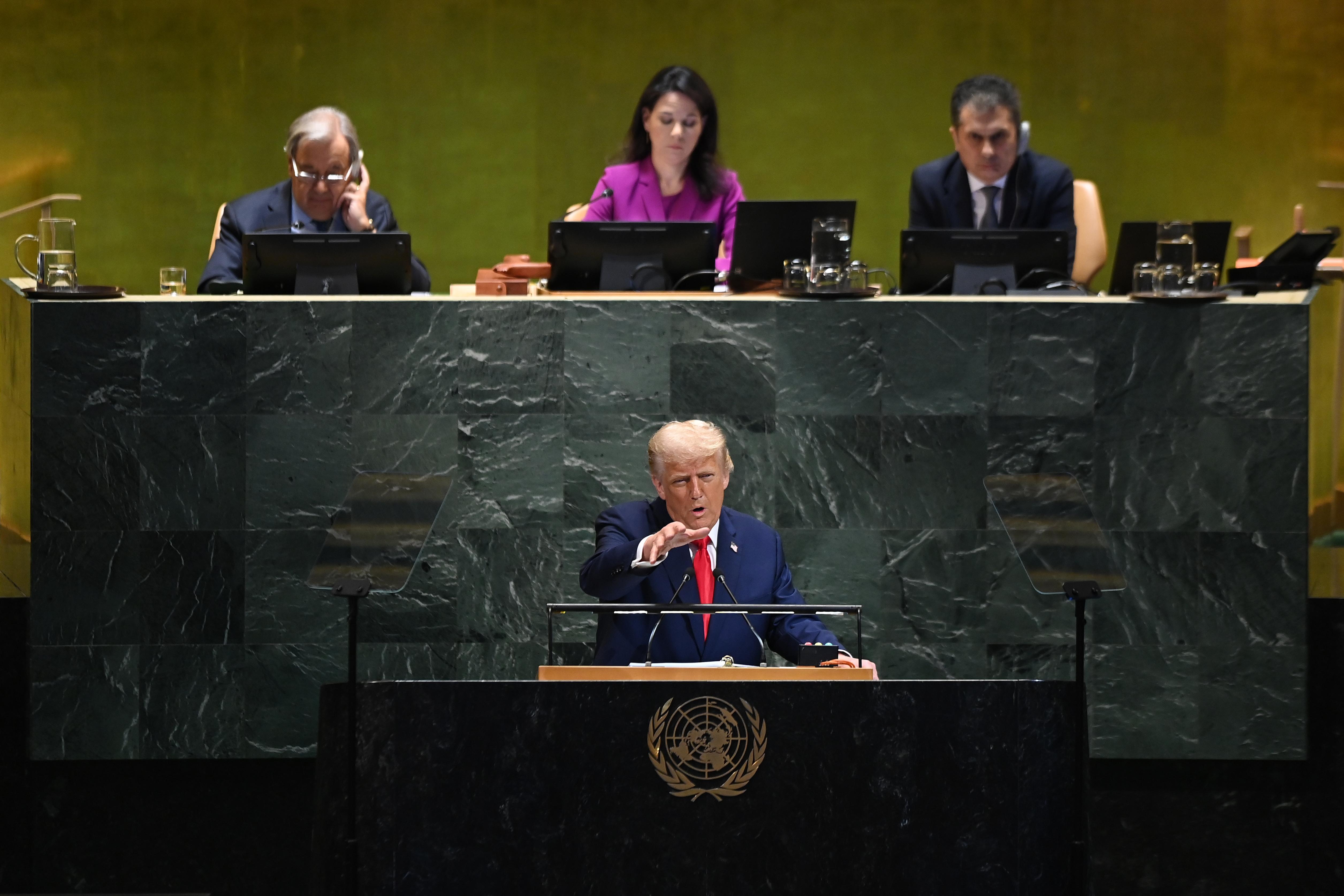 “我從聯(lián)合國得到兩樣?xùn)|西:故障的自動扶梯和故障的提詞器?!毖葜v中,特朗普抱怨和攻擊不斷。他指責一些國家承認巴勒斯坦國是“鼓勵沖突持續(xù)”,批評歐洲國家購買俄羅斯石油,質(zhì)疑聯(lián)合國的作用,還稱氣候變化問題是“騙局”。