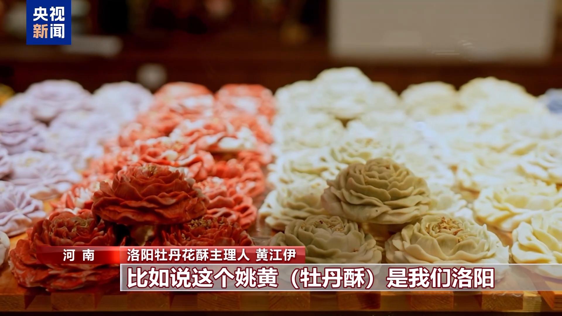 河南洛陽(yáng)牡丹花酥主理人 黃江伊:我們用了洛陽(yáng)牡丹花現(xiàn)有的顏色,比如說(shuō)這個(gè)姚黃(牡丹酥)是洛陽(yáng)特有的姚黃牡丹,我們就對(duì)應(yīng)它的牡丹進(jìn)行了配色,想讓它好看又好吃,又健康。 不斷“綻放”的牡丹酥和牡丹花茶等伴手禮一起,在洛陽(yáng)托舉出一個(gè)“味蕾經(jīng)濟(jì)”,形成牡丹的“全株利用”的新業(yè)態(tài)。