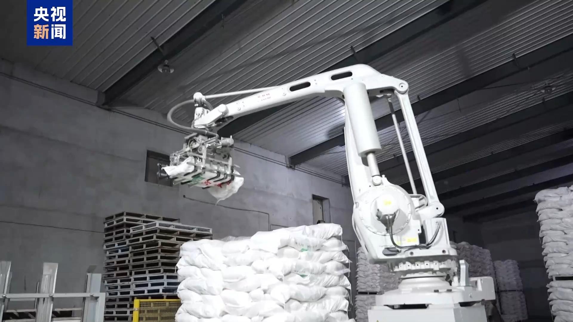 在這個(gè)生產(chǎn)線(xiàn)上,工人有了數(shù)字“工友”。面粉的分揀靠的是自動(dòng)碼垛機(jī),也就是一個(gè)超級(jí)機(jī)械手來(lái)完成。而面粉“坐著”螺旋式的輸送機(jī),進(jìn)入到分揀環(huán)節(jié)。