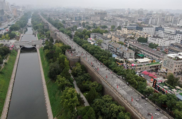 游客在西安城墻景區(qū)參觀。圖源:新華社