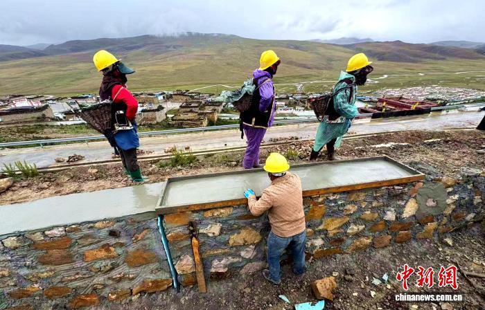 圖為扎雜村牧民積極參與村里的防洪堤"以工代賑"項(xiàng)目建設(shè)。扎雜村駐村工作隊(duì) 供圖