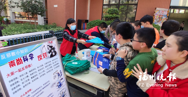 福州新聞網(wǎng)3月26日訊(福州晚報記者 陳木易 文/攝)前日,福州市反邪教協(xié)會、倉山區(qū)教育局、倉山區(qū)科協(xié)、倉山區(qū)政法委牽頭,在倉山區(qū)教師進(jìn)修學(xué)校附屬第二小學(xué)舉辦了以“忠誠鑄平安——平安校園我參與”為主題的系列活動。圖為學(xué)生們在領(lǐng)取反邪教宣傳材料。 |