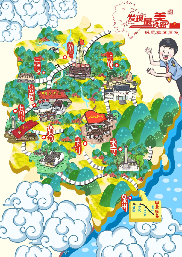 贛閩鐵路紅色環(huán)線示意圖。圖片來(lái)源:中國(guó)鐵路南昌局集團(tuán)有限公司 4月23日至26日,參加該活動(dòng)的媒體采訪團(tuán)一行40余人,從英雄城南昌出發(fā),沿著京九、贛瑞龍、南龍鐵路及昌贛、合福、滬昆高鐵組成的環(huán)線鐵路,重溫革命往事,探尋紅色故事,縱覽發(fā)展變遷,感悟初心傳承。南昌、興國(guó)、瑞金、長(zhǎng)汀、清流、永安、上饒……由贛入閩,出閩入贛,4天時(shí)間雖然短暫,但媒體采訪團(tuán)記者進(jìn)車站、聽(tīng)黨史、訪企業(yè)、入工地……通過(guò)實(shí)地探尋、走訪,見(jiàn)證鐵路在贛閩大地不斷延伸,沿途革命老區(qū)的經(jīng)濟(jì)在快速發(fā)展。 上饒火車站:五次嬗變鑄就亮麗名片 據(jù)介紹,上饒火車站是全國(guó)首座垂直騎跨式高鐵樞紐站。滬昆高鐵、合福高鐵和滬昆鐵路在此呈十字交匯,形成了三場(chǎng)兩所格局,旅客可在站內(nèi)方便快捷地實(shí)現(xiàn)無(wú)縫換乘。目前,該站日均??苛熊?00多趟,是江西省內(nèi)??苛熊囎疃嗟幕疖囌?。平均每日到發(fā)旅客5萬(wàn)余人次。 上饒站黨總支書(shū)記陳衛(wèi)紅告訴記者,火車站始建于1935年,經(jīng)過(guò)1953年、1998年兩次原址重建,2006年搬遷到現(xiàn)址,2014年新站房落成運(yùn)營(yíng),歷經(jīng)了“五生五世”。贛東北的上饒因地理位置優(yōu)越,交通便利,自古就有“八方通衢”“豫章第一門(mén)戶”之稱,鐵路的發(fā)展,車站的升級(jí)就像為饒城發(fā)展插上了隱形的翅膀。