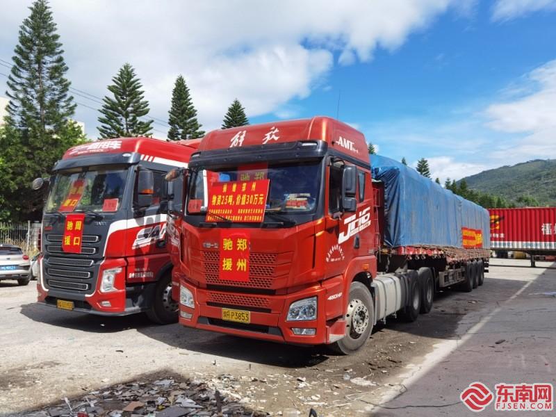 75噸愛(ài)心物資從福州出發(fā)。東南網(wǎng)記者 張立慶 攝 東南網(wǎng)7月24日訊(本網(wǎng)記者 張立慶)近日,受持續(xù)強(qiáng)降雨影響,河南部分受災(zāi)地區(qū)出現(xiàn)交通中斷、停水停電、食物短缺等一系列問(wèn)題,群眾正常生活受到很大影響。一方有難,八方支援。為弘揚(yáng)人道主義精神,7月24日上午,福建省商盟公益基金會(huì)聯(lián)合福州市河南商會(huì)、廈門市河南商會(huì)、圓夢(mèng)工程組委會(huì)、福建省雕刻藝術(shù)家協(xié)會(huì)、福建省長(zhǎng)城書(shū)畫(huà)院、福建省傳習(xí)書(shū)畫(huà)院,福建圓寶齋文化藝術(shù)發(fā)展有限公司等多家社會(huì)組織捐贈(zèng)的總價(jià)值達(dá)七十余萬(wàn)元的75噸愛(ài)心物資從福州出發(fā),馳援河南災(zāi)區(qū)。 現(xiàn)場(chǎng),福建省商盟公益基金會(huì)執(zhí)行會(huì)長(zhǎng)李靖帶領(lǐng)福建省商盟公益基金會(huì)、福州市河南商會(huì)、廈門市河南商會(huì)相關(guān)人員、福清市藍(lán)天救援服務(wù)中心志愿者及貨車司機(jī)等忙碌不停,將75噸愛(ài)心物資分別裝入3輛重型卡車,包括大米、食用油、礦泉水、方便面,預(yù)計(jì)于7月25日凌晨抵達(dá)河南。