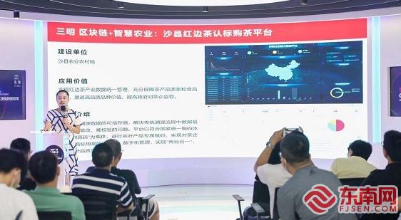 陳一彬展示區(qū)塊鏈的不同場(chǎng)景 東南網(wǎng)記者陳楠攝 記者在現(xiàn)場(chǎng)看到,共有熵鏈科技(福建)有限公司、銳達(dá)互動(dòng)科技股份有限公司等6家企業(yè)帶來(lái)創(chuàng)新應(yīng)用分享,包括區(qū)塊鏈應(yīng)用開(kāi)發(fā)引擎盤(pán)古?BDE、區(qū)塊鏈應(yīng)用建創(chuàng)平臺(tái)夸父?BAB、IPFS 文件協(xié)同共享平臺(tái)、基于區(qū)塊鏈的綜合素質(zhì)評(píng)價(jià)深化應(yīng)用、建盞云、SOLAR 數(shù)據(jù)共享平臺(tái)等。 福建省區(qū)塊鏈協(xié)會(huì)秘書(shū)長(zhǎng)陳一彬?yàn)榇蠹曳謩e展示了來(lái)自福州、廈門(mén)、泉州、南平、平潭、三明、龍巖等地15個(gè)不同場(chǎng)景的區(qū)塊鏈創(chuàng)新應(yīng)用,包括沙縣紅邊茶認(rèn)標(biāo)購(gòu)茶平臺(tái)、武夷山區(qū)塊鏈溯源平臺(tái)、“票鏈”區(qū)塊鏈電子發(fā)票平臺(tái)等。其中沙縣紅邊茶認(rèn)標(biāo)購(gòu)茶平臺(tái)可幫助實(shí)現(xiàn)茶葉溯源數(shù)據(jù)的可信存儲(chǔ),解決傳統(tǒng)溯源流程中數(shù)據(jù)易偽造、易篡改、難校驗(yàn)的問(wèn)題。平臺(tái)以符合國(guó)家統(tǒng)一編碼體系的“溯源碼”為載體,進(jìn)行茶葉產(chǎn)品專(zhuān)屬賦碼,實(shí)現(xiàn)對(duì)茶企產(chǎn)量、商標(biāo)用量的精細(xì)化、數(shù)字化管理,實(shí)現(xiàn)“兩標(biāo)合一”,提升茶葉品質(zhì)及品牌影響力。 |