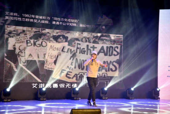嘻哈歌手茶童生動演繹一段“防艾”RAP《咨詢處》,贏得觀眾熱烈掌聲。