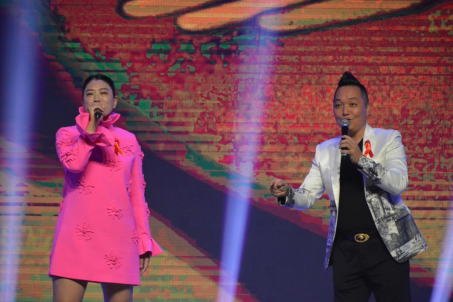 福州本土主持人土豆,與他的妻子豆嫂帶來了歌曲《與艾揮揮手》,淺顯易懂的歌詞,提高大家艾滋病的自我防范意識。