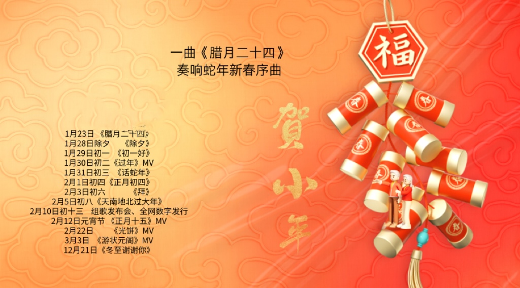 2024年12月4日,“春節(jié)——中國(guó)人慶祝傳統(tǒng)新年的社會(huì)實(shí)踐”列入聯(lián)合國(guó)教科文組織人類非物質(zhì)文化遺產(chǎn)代表作名錄。在此次申遺成功這一重大背景下,為更好弘揚(yáng)春節(jié)文化,政協(xié)福清市委員會(huì)、中共福清市委宣傳部制作出品了此次的福清蛇年新春組歌,由福清籍知名詞作家貞堯仔和央視春晚作曲人蔣舟擔(dān)綱主創(chuàng),組歌共計(jì)12 首,匯聚了多方音樂(lè)力量,涵蓋了央視群星、省內(nèi)知名歌唱家以及福清籍音樂(lè)人共同參與演唱,旨在打造一場(chǎng)極具感染力與表現(xiàn)力的音樂(lè)盛宴。(愛(ài)歌曲) |
