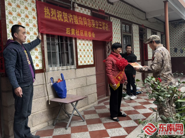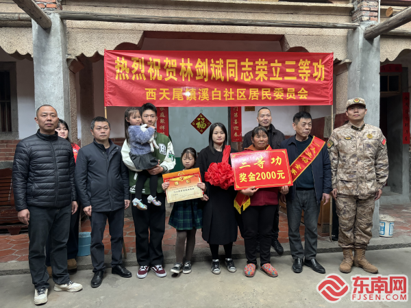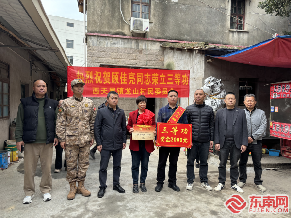 宣讀立功喜報(bào) 東南網(wǎng)1月24日訊(通訊員 劉曉頏 文/圖)歲末年初,喜報(bào)頻頻。近日,莆田市荔城區(qū)西天尾鎮(zhèn)退役軍人服務(wù)站會(huì)同相關(guān)部門組織開展送喜報(bào)活動(dòng),為轄區(qū)內(nèi)立功的現(xiàn)役軍人家庭上門送去立功喜報(bào)及慰問金,讓軍屬共享喜悅榮光,營造尊崇軍人軍屬的濃厚社會(huì)氛圍。 鑼聲鏗鏘,鼓音震天。隨著車鼓隊(duì)的鑼鼓聲,荔城區(qū)退役軍人事務(wù)局、西天尾鎮(zhèn)武裝部、西天尾鎮(zhèn)退役軍人服務(wù)站聯(lián)合村(社區(qū))上門為榮立三等功的現(xiàn)役軍人顧佳亮、許駿焱和林劍斌送去立功喜報(bào)。